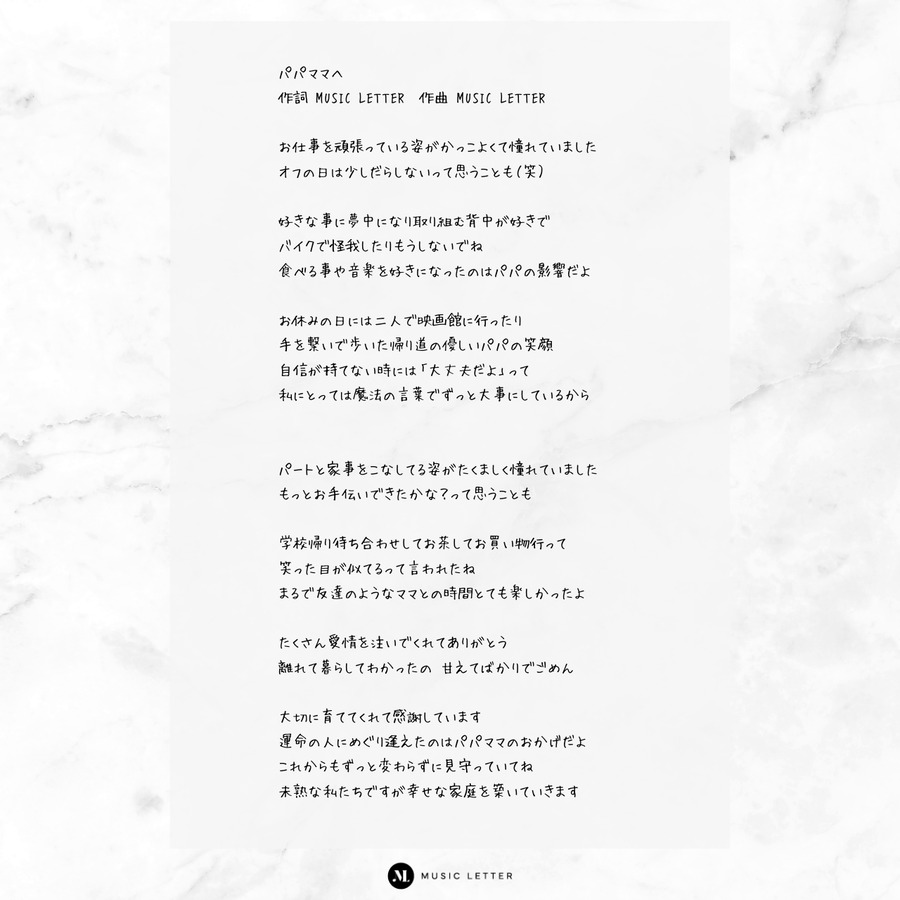 MUSIC LETTER が少しでもお役に立てる様に、より良い作品制作に全力で取り組んでまいります。何卒、よろしくお願いいたします。