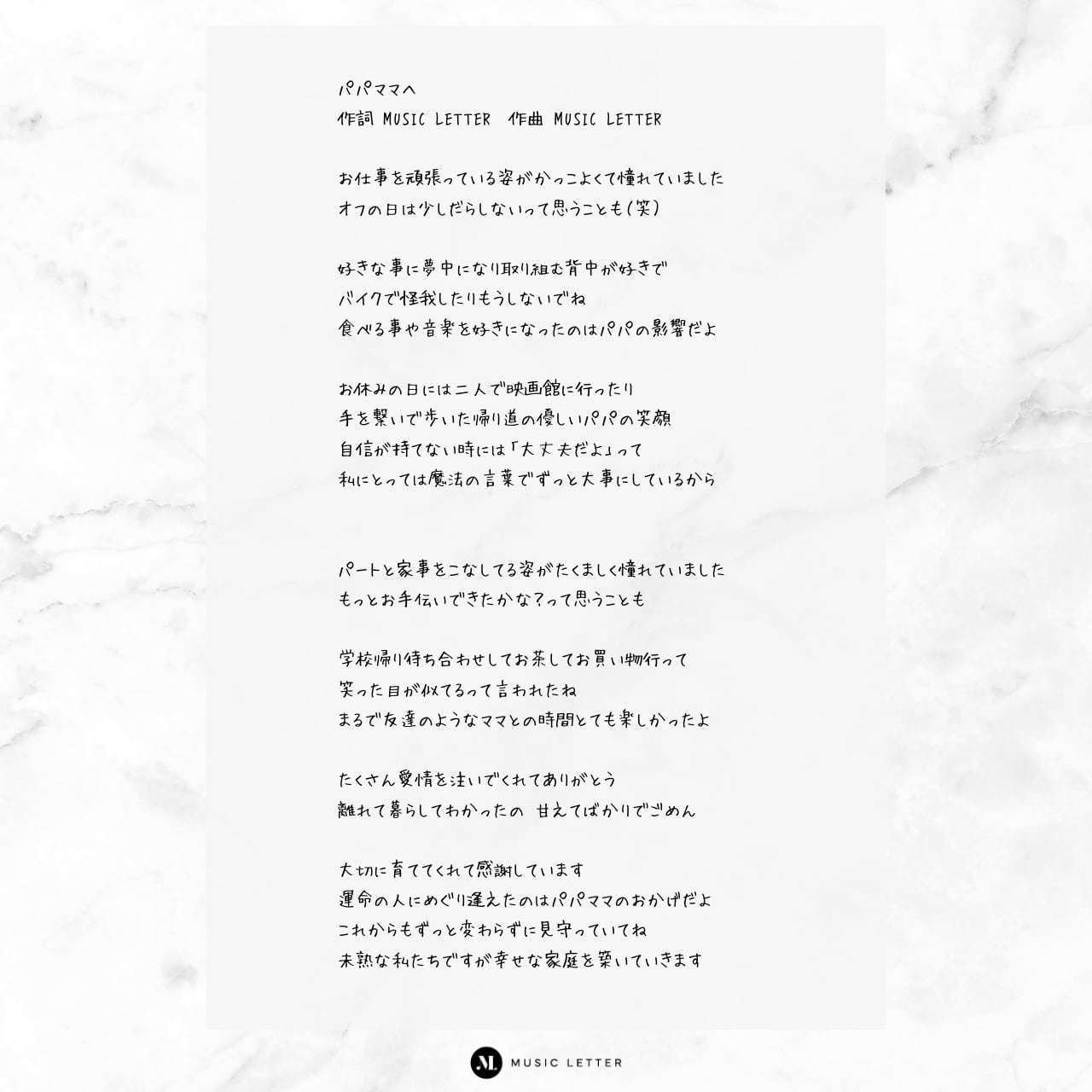 MUSIC LETTER が少しでもお役に立てる様に、より良い作品制作に全力で取り組んでまいります。何卒、よろしくお願いいたします。